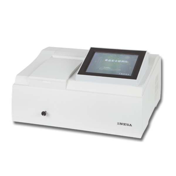 ,酶催化神經(jīng)傳導代謝產(chǎn)物(乙酰膽堿)水解,其水解產(chǎn)物與顯色劑反應,產(chǎn)生黃色物質,用分光光度計測定412nm下吸光度隨時間的變化值,計算出抑制率,通過抑制率可以判斷出樣品中是否含有有機磷或氨基甲酸酯類農(nóng)藥的殘留。可以實現(xiàn)有機磷及氨基甲酸酯類農(nóng)藥殘留量的現(xiàn)場快速檢測。